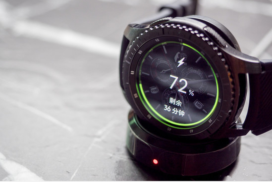 相比起續航能力的不功不過,三星Gear S3的充電可就是個尷尬的事情。其并沒有內置充電接口,而是采用無線充電的設計。這樣的好處在于能夠保證視覺上的一體性,也方便于防水保護設計,壞處則是需要相對應的充電底座進行充電。此外其雖采用Qi無線充電標準,可實際測試其并不能夠兼容相對應標準的無線充電器。相比起續航能力的不功不過,三星Gear S3的充電可就是個尷尬的事情。其并沒有內置充電接口,而是采用無線充電的設計。這樣的好處在于能夠保證視覺上的一體性,也方便于防水保護設計,壞處則是需要相對應的充電底座進行充電。此外其雖采用Qi無線充電標準,可實際測試其并不能夠兼容相對應標準的無線充電器。這就意味著其標配的充電器可不能丟,要是出門才發現沒電,那更是臨時抱佛腳都找不到佛在哪。能挽回點分數的,就是其充電速度還不錯,出門前充電10分鐘,能抵的住12小時使用。并且三星為其設計的包裝的細節設計,使得其在擺放充電時相當方便。這就意味著其標配的充電器可不能丟,要是出門才發現沒電,那更是臨時抱佛腳都找不到佛在哪。能挽回點分數的,就是其充電速度還不錯,出門前充電10分鐘,能抵的住12小時使用。并且三星為其設計的包裝的細節設計,使得其在擺放充電時相當方便。